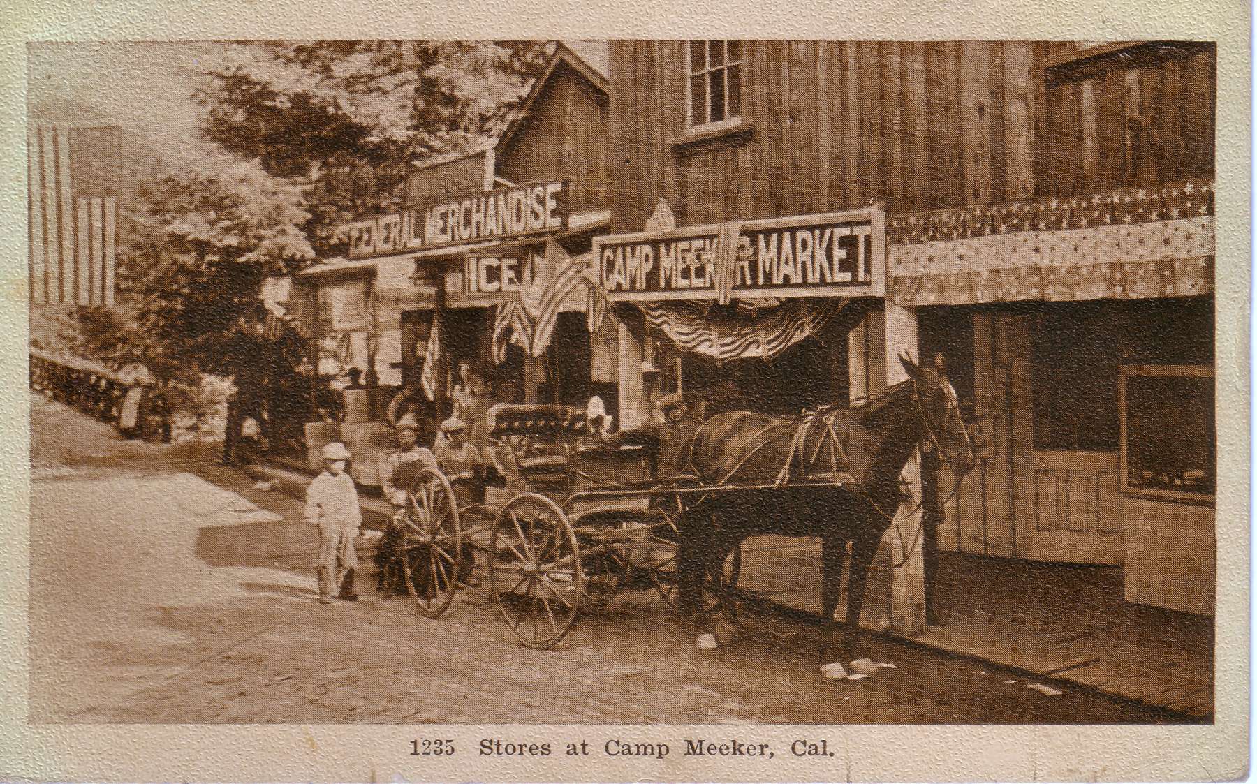 Camp Meeker began as a redwood-era logging settlement along Dutch Bill Creek, taking its name from lumberman Melvin C. Meeker, who operated mills in the area in the late 1800s. As rail access expanded, it shifted into a small vacation colony where families built simple cabins and summer cottages among the redwoods. True to its name, Camp Meeker also became known for youth summer camps—traditionally including both boys’ and girls’ programs—adding a seasonal rhythm of campfires, creek days, and outdoor gatherings to the community’s resort character. Anchored by its long-running post office and surrounded by towering redwoods, Camp Meeker today remains a quiet, close-knit mix of historic cabins and year-round homes, closely connected to the broader Russian River–West County community.