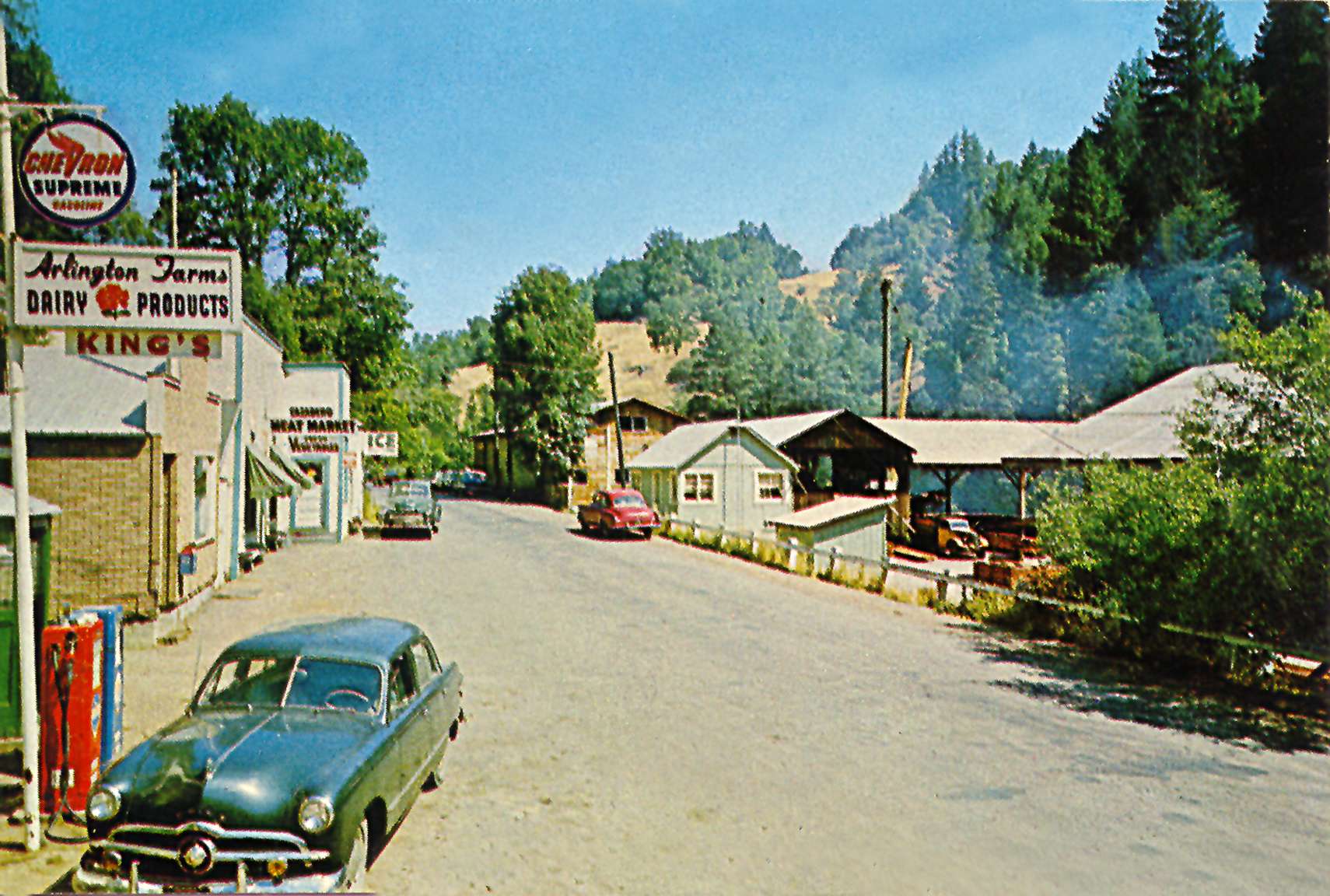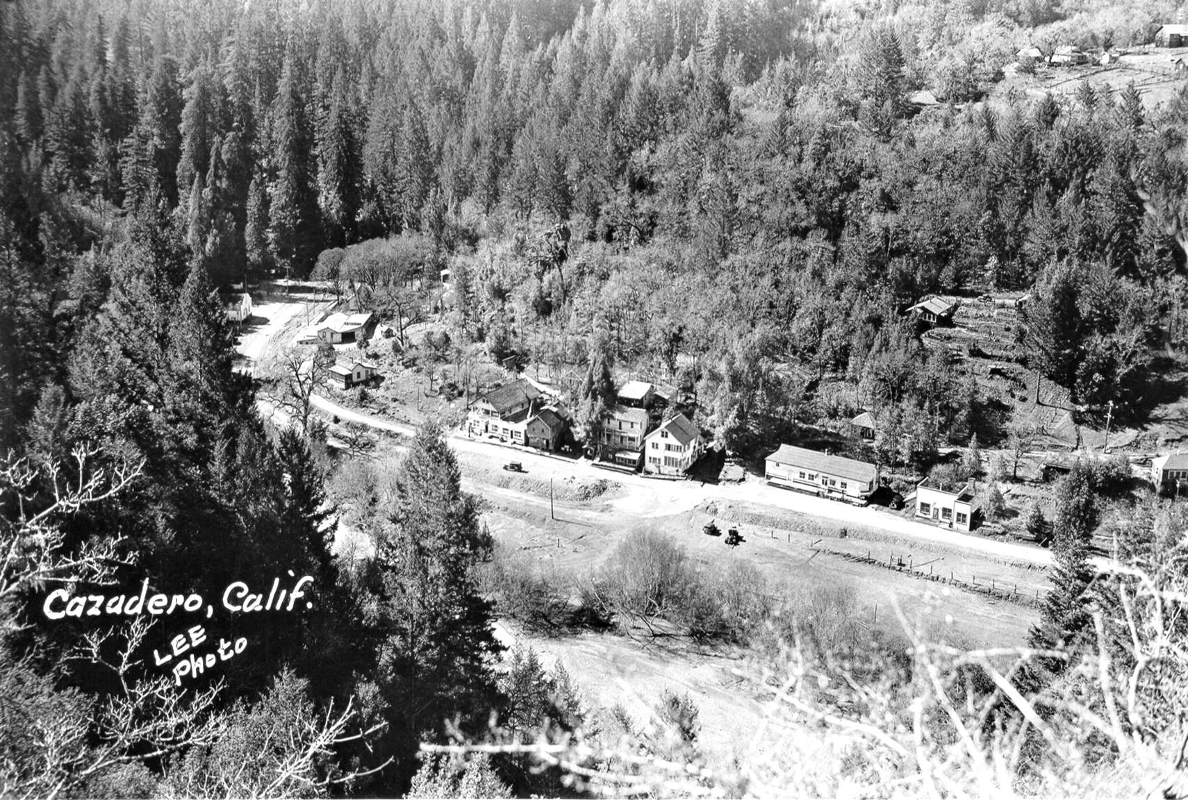 Cazadero—named from the Spanish cazadero (“hunting place”)—grew up in the late 1800s as an Austin Creek redwood logging community, with small mills and timber camps scattered through the surrounding canyons. Its biggest boost came when the narrow-gauge North Pacific Coast Railroad pushed up the Russian River and Austin Creek and reached Cazadero in 1886, hauling redwood lumber out and bringing workers and visitors in; in the early 1900s the line was absorbed into the Northwestern Pacific system, and Cazadero became known as a true “end-of-the-line” town. As a remote, heavily wooded area, local fire protection became essential early on—Cazadero’s volunteer fire service grew out of that need and has long been a community cornerstone, protecting homes, campgrounds, and timberlands across a wide rural district. And then there’s the weather: Cazadero is famously one of California’s wettest places, often seeing roughly 70–90 inches of rain a year in the surrounding watershed, which helps keep the hills lush and green. Today it remains a small, rural redwood town—quiet, scenic, and proudly off the beaten path—still shaped by its logging past, creek country, and neighborly self-reliance.