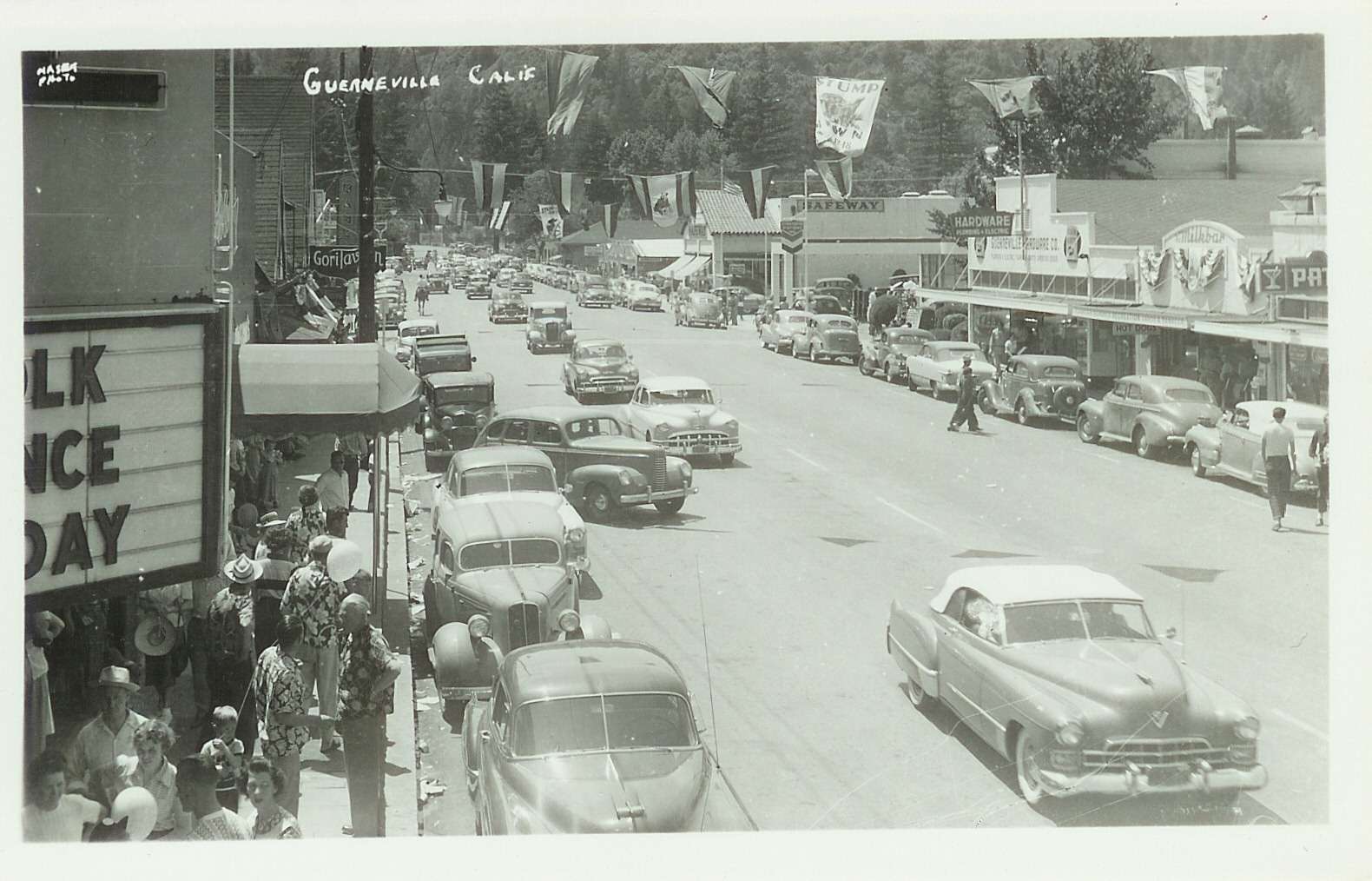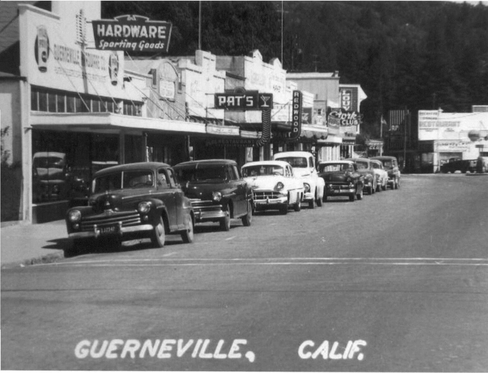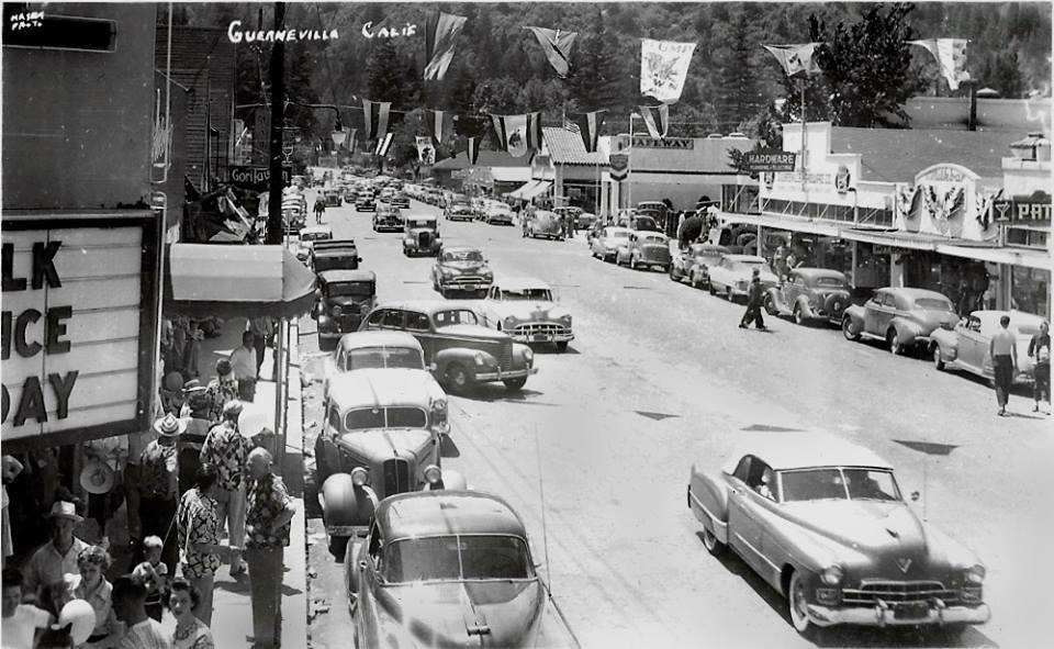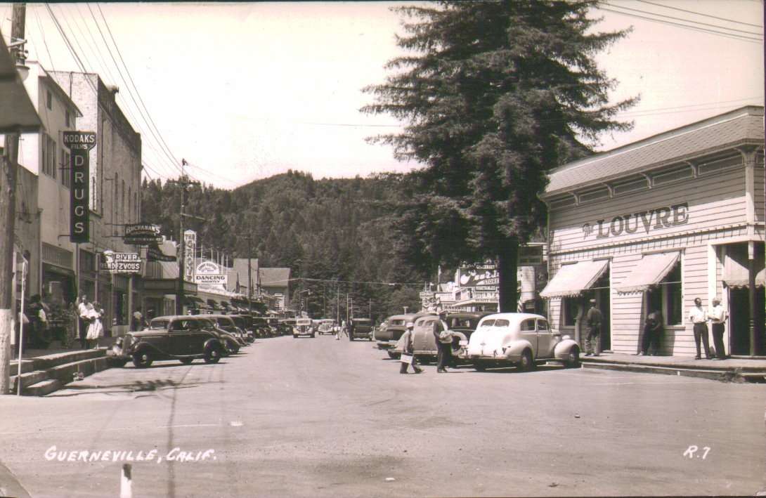Guerneville sits on the lower Russian River in a region first inhabited by Indigenous peoples of the southern Pomo, including the Kashaya Pomo. “Big Bottom” was an early nickname for Guerneville, referring to the town’s wide, flat Russian River bottomland. It grew rapidly in the late 1800s as the Gold Rush era fueled demand for redwood lumber, bringing logging camps, mills, and rail lines that hauled timber—and later visitors—through town. By the early 20th century, the river became a beloved family vacation spot of cabins and resorts, and in the 1960s–70s Guerneville drew artists, counterculture seekers, and an increasingly visible LGBTQ community. Today it remains a welcoming river-and-redwoods destination shaped by all those layers of history.