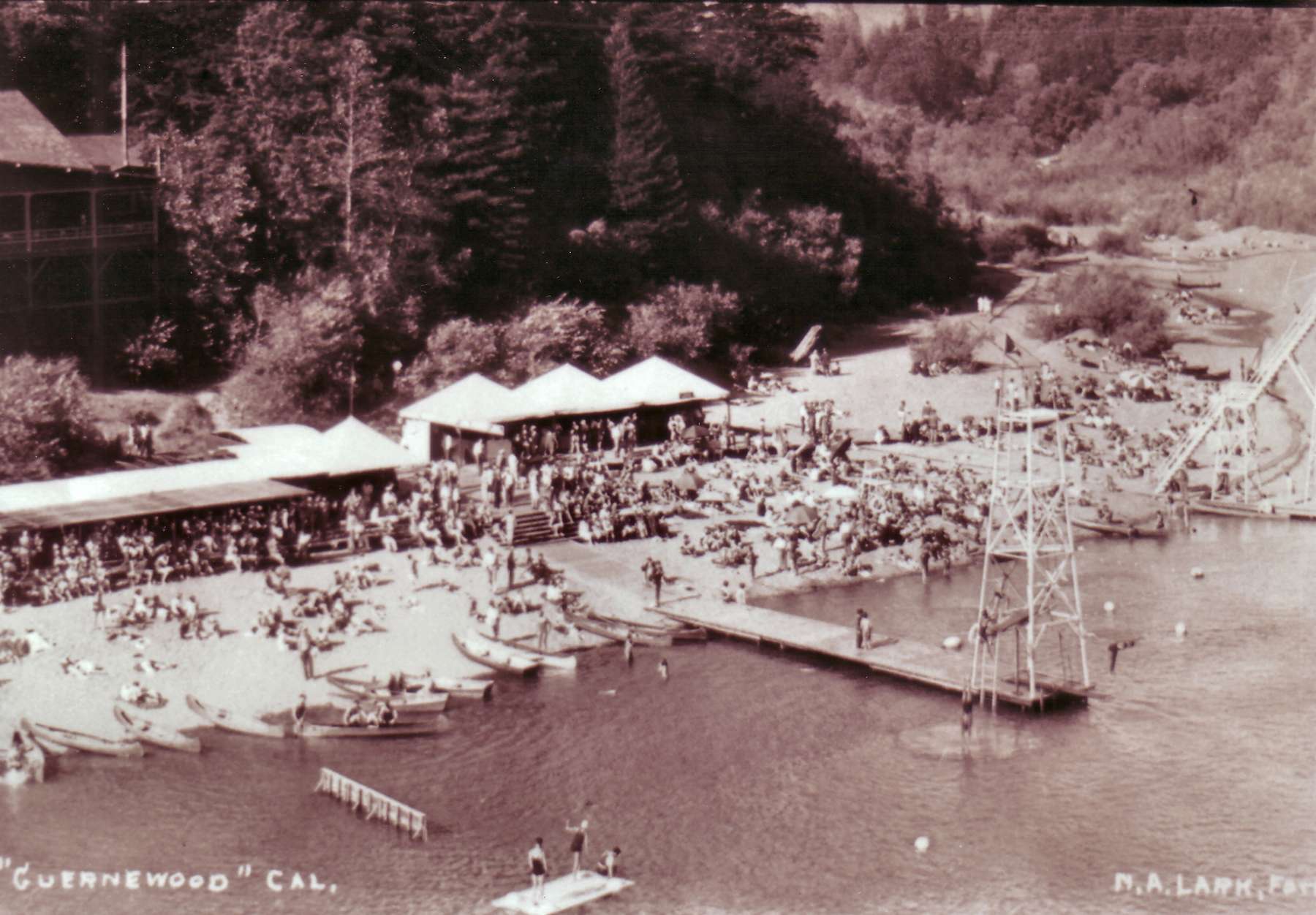 Guernewood Park developed as one of the Russian River’s classic cabin-and-cottage neighborhoods, taking shape in the early 1900s as weekend and summer living boomed in the hills above Guerneville. Set among redwoods just back from the main river corridor, it attracted families looking for a quieter retreat—close to town and the river, but tucked into the forest. In the resort era, summer life often centered on the river itself, with nearby swimming beaches and seasonal platforms and docks that became social hubs for visitors and locals escaping the heat. Like many West County “parks” and tracts, the area grew through small-lot subdivisions, modest vacation homes, and a do-it-yourself mountain character that blended seasonal visitors with long-time locals. Over time, more cabins became full-time residences as people sought a redwood lifestyle with easy access to Guerneville. Today Guernewood Park remains a distinctly residential pocket of the greater Guerneville area—known for winding lanes, tall trees, neighborhood pride, and that familiar Russian River mix of weekenders and year-round community.